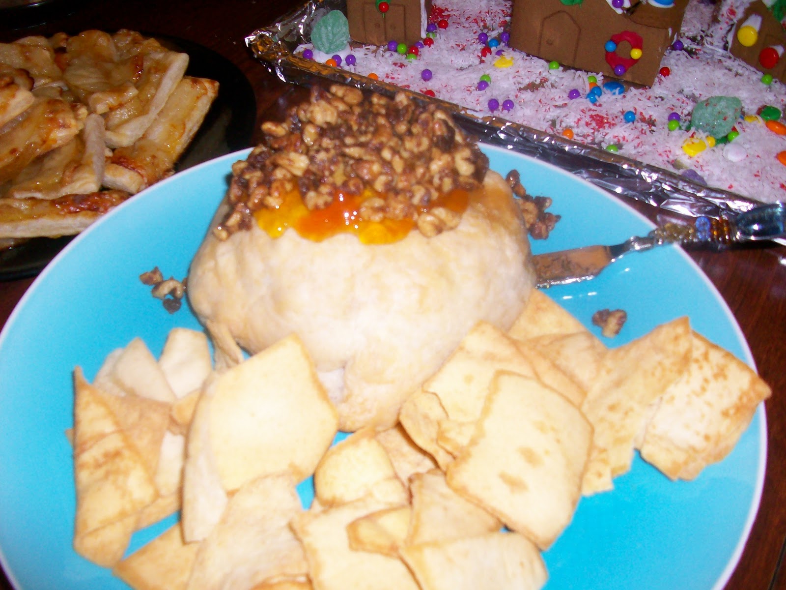 This dish is easy to make and is a good alternative to your basic cheese and cracker plate. This was a big crowd pleaser and really dresses up an appetizer spread. The combo of cheese, nuts, and fuit is always tasty. Next time I make this I will be sure to get a picture of the ooy gooy inside :)